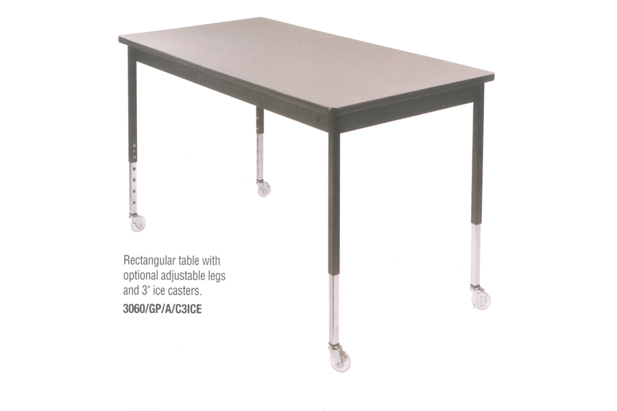 - Adjustable legs available on all General Purpose and Classroom Tables(22″ to 31″). Add $30.00 list.Tables adjust in 1″ increments, 18/16 gauge (1 1/8″ / 1″) tubing is standard as are vinyl end caps. Add $16.00 for adjustable glides on adjustable legs.